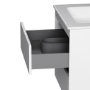 Vegghengslingen gjør at gulvet fremstår større og gir badet en lett og luftig atmosfære. To dype skuffer i antrasitt, med sklisikker innside og soft-close, gir deg både orden og stillhet i hverdagsrutinene.