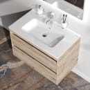 To romslige skuffer med sklisikker innside gir deg god plass til alt fra håndklær til småting, og soft-close-systemet sørger for at skuffene glir stille på plass hver gang. Skjulte skuffeskinner fremhever det rene og minimalistiske uttrykket, mens smarte integrerte føringer gjør montering og rørføring enklere – uten at det går på bekostning av helhetsinntrykket.