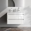 Med dette vegghengte baderomsmøbelet i hvit høyglans får du en gjennomtenkt kombinasjon av funksjon, estetikk og hverdagsvennlig design. Den glansfulle, rene hvite overflaten og de grafittfargede detaljene gir et stilrent uttrykk, mens den veggmonterte konstruksjonen gir rommet et luftig preg og får badet til å føles større.