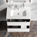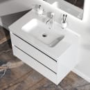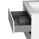To romslige skuffer i dyp antrasitt med sklisikker innside gir deg god plass til alt fra håndklær til småting, og soft-close-systemet sørger for at skuffene glir stille på plass hver gang. Skjulte skuffeskinner fremhever det rene og minimalistiske uttrykket, mens smarte integrerte føringer gjør montering og rørføring enklere – uten at det går på bekostning av helhetsinntrykket.