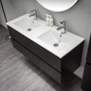 Bathlife Eufori i sort er et servantskap med dobbel servant som gir deg både romslig oppbevaring og funksjonelle løsninger. Med en bredde på 1200 mm, høyde på 500 mm og dybde på 460 mm passer dette møbelet godt for deg som ønsker god plass på badet. Servanten er laget i hvit porselen, mens skapet har en halvmatt sort overflate i MDF.