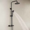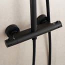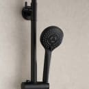 Med Bathlife Glimma takdusjsett får du et stilrent og moderne dusjsett som kombinere funksjonalitet og design. Settet inkluderer termostatbatteri, justerbar dusjstang, et romslig dusjhode på 200 mm og en hånddusj med tre strålefunksjoner: normal, dusjregn og massasje. Perfekt for å tilpasse opplevelsen etter dine behov.