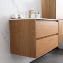 Bathlife Lättsam Natur har et skandinavisk uttrykk med lakkert eikefinér og halvmatt finish. Skuffene er utstyrt med håndtak og har mykstengende funksjon for en stille og behagelig bruk. Den øverste skuffen har egne avdelere for bedre organisering.