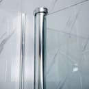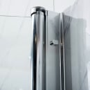 Dusjhjørnet er laget for montering midt på en vegg, noe som gir deg flere muligheter for plassering på badet. Klart glass og aluminiumprofiler gir et lyst og åpent inntrykk. Dørene kan felles både inn og ut, slik at du enkelt kan tilpasse åpningen etter behov.