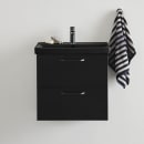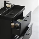 Dette servantskapet har slette skuffefronter i mattlakkert utførelse og leveres i sort. Skuffene er utstyrt med Soft Close, som gir en behagelig og stillegående bruk. Frontene har bormerker på innsiden for enkel montering av de medfølgende håndtakene med CC160-dimensjon.
