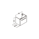 Servantskapet er produsert i melaminbelagt sponplate med ABS-kanter. Skuffen glir lett inn og ut på de justerbare metallskinnene og har fullt uttrekk og selvlukkende soft close-funksjon, som sikrer at den lukkes mykt og lydløst.