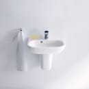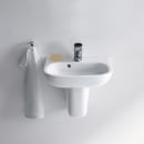 Servanten har et dempet uttrykk med rette linjer og myke hjørner, noe som gir et tidløst og moderne preg. Serien D-Code er utviklet for å tilby løsninger til de fleste baderomsbehov, enten du ønsker en enkel servant eller skal tilpasse til hel- eller halvsøyle. Formen er rektangulær, og den hvite høyglansoverflaten gir et rent og lyst inntrykk.