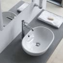 Velg Duravit Foster toppmontert servant når du ønsker en ovalt formet servant i sanitærkeramikk med Wondergliss-overflate og integrert overløp.