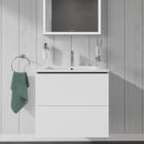 Ønsker du et moderne og minimalistisk design for badet ditt? Duravit L-Cube servantskapet er den perfekte løsningen. Med sine to romslige skuffer, hvorav den øverste har en smart utskjæring for vannlåsen, får du både funksjonalitet og estetikk på en gang. De grepsfrie skuffene med push open-funksjon gjør det enkelt å åpne og lukke, hvilket gir et rent og lekkert utseende.