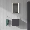 - 43 x 30 cm – plassbesparende servant med høyde på 150 mm