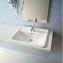 Velg Duravit Starck 3 servant for nedfelling når du ønsker en rektangulær servant med tydelig kant, høyglans hvit overflate og funksjonelle detaljer for montering i benkeplate.