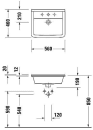 Duravit Starck 3 servant for nedfelling kombinerer tydelig formspråk med funksjonelle detaljer. Servanten har ett blanderhull, måler 56 x 46 cm og leveres i hvit høyglans. Den rektangulære formen, den karakteristiske kanten som går hele veien rundt og det lave bakpanelet gir et uttrykk som er både tidløst og moderne.