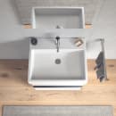 Servanten kan monteres på vegg eller på møbel, og festes med opphengsbolter. Den er kompatibel med skap fra Vero-møbelserien, slik at du kan skape en helhetlig og designfokusert løsning. Metallkonsoll i krom kan benyttes for å fremheve proporsjonene, og denne er høydejusterbar med stenger mot veggen som fungerer som håndkleholdere. Servanten er ikke egnet for hel- eller halvsøyle.