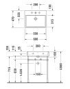 Servanten har en bredde på 600 mm, dybde på 470 mm og høyde på 165 mm. Vekten er 18,7 kg. Den leveres uten bunnventil og overløpsdeksel, og monteringsmateriale må bestilles separat. Vedlikeholdsinstruksjon følger med. Tilleggsprodukter og tilbehør finnes under "tilbehør".