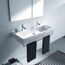 Velg Duravit Vero møbelservant når du ønsker en rektangulær servant med to blanderhull, høyglanset hvit overflate og fleksible monteringsmuligheter.