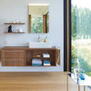 Den rektangulære formen gir et moderne uttrykk og gjør det enkelt å tilpasse servanten til ulike baderomsstørrelser. Servanten finnes i flere bredder fra 25 til 50 cm og ulike varianter, blant annet for montering langs vegg, med armaturområde på høyre eller venstre side, eller med større innvendig basseng og ekstra oppbevaringsplass. Når du kombinerer servanten med konsoller eller benkeplater, får du en løsning som virkelig fremhever designet. Nedfellbar variant med armaturområde kan installeres ovenfra for et sømløst resultat.