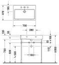 Duravit Vero møbelservant kombinerer et rettvinklet design med funksjonelle mål på 70 x 47 cm og ett blanderhull. Den hvite høyglans-overflaten gir et moderne uttrykk, og servanten er laget av Sanitærkeramikk for lang levetid. Dette produktet er tilpasset montering på vegg og passer både til små og større baderom, inkludert gjestetoaletter.