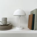 Oppladbar LED-bordlampe med underskjerm for et mer behagelig lys. Indikator som viser når lampen har 20 % strøm igjen. 3 lysestaker.