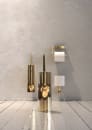 Frost Quadra toalettbørste 3, polert gull. Frittstående, rund. Materiale: rustfritt stål. Design: Bønnelycke MDD. Ø89 mm, høyde: 365 mm.