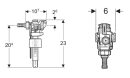 Geberit innløpsventil type 383 med vanntilkobling på siden, justerbar fyllingshøyde og med 3/8» messingnippel.