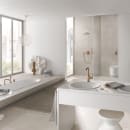 Armaturet har metallhendel og GROHE Long-Life-overflate i børstet Warm Sunset. Dette gir både slitestyrke og et tidløst uttrykk på badet.