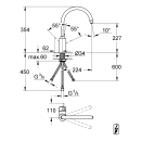 Den høye tuten gjør det enkelt å vaske eller fylle store kjeler. Svingradiusen kan tilpasses til 0°, 150° eller 360°, slik at tuten ikke slår i skapene. Kranen har et etthullsmontasje-system for rask installasjon.