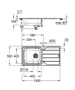 K500 60-S 100/50 1.0 rev fra GROHE er en kjøkkenvask i rustfritt stål med dreneringsfelt, designet for funksjonalitet og plass. Vasken har utvendige mål på 1000 mm bredde og 500 mm dybde, og passer i skap med minimum 550 mm bredde. Med en kum på 450 x 400 mm og 180 mm høyde får du god plass til oppvask og matlaging.