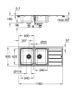 K500 80-S 116/50 2.0 rev fra GROHE gir deg en romslig løsning med to kummer og avrenningsfelt. Med en total bredde på 1160 mm og dybde på 500 mm får du god plass til oppvask og matlaging. Hver kum måler 340 x 420 x 185 mm, og vasken er laget i rustfritt stål AISI 304 med satin-overflate for lang levetid.