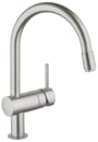 Velg Minta fra GROHE når du ønsker en kjøkkenkran med uttrekkbar dusj, 360° svingbar tut og slitesterk SuperSteel-finish.