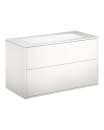 Artic møbelpakken er tilgjengelig i flere størrelser, og med håndvaske som har ett eller to hanehull, slik at du kan velge den løsningen som passer best for ditt baderomsmiljø.