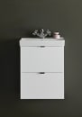 Hafa Neat med skuffer og servant i hvit utførelse gir deg et plassbesparende servantskap på 420 mm bredde, 320 mm dybde og 550 mm høyde. Dette skapet har en matt, lakkert overflate og leveres med servant i porselen og overløp. Med en vekt på 21 kg og justerbare opphengsbeslag med veggskinne, er det enkelt å montere for én person.