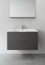 Skapet er laget av MDF med lakkert finish, noe som gir en robust og slitesterk overflate. Du kan velge mellom å montere en frittstående servant på benkeplate eller en nedsenket servant i porselen. Håndtak, PUM-vannlås for kommode, skuffebelysning og eluttak kan kjøpes som tilbehør. Skapet er tilpasset både gulv- og veggavløp, og har justerbare opphengsbeslag for enkel montering.
