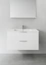Dette servantskapet fra Hafa Shape-serien har et moderne uttrykk med matt hvit overflate. Med en bredde på 900 mm, høyde på 535 mm og dybde på 453 mm passer det godt inn på badet. Skapet er tilpasset både gulv- og veggavløp.