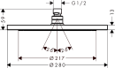 Dusjhodet har en overflate i krom og en stråleskive laget av metall. Den runde formen og størrelsen på 280 mm gir et moderne uttrykk og god komfort. RainAir-strålen gir en behagelig dusjopplevelse med mange små dråper.