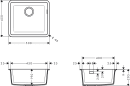 Med sin rektangulære form og grafittsort overflate gir S51 S510-U450 et stilrent uttrykk. Overløpet er plassert på høyre side av vasken, og veggtykkelsen er 7 mm. Vasken har ett kum og leveres uten kranhull, noe som gir et rent og moderne utseende.