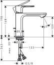 Rebris E servantarmatur har en tut med 109 mm høyde og en normal stråletype som gir jevn vannføring. ComfortZone gir ekstra plass under tuten, noe som gjør det enkelt å vaske hender eller fylle beholdere. Den justerbare temperaturbegrensningen bidrar til trygg bruk.