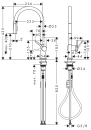 Armaturet har en uttrekkbar dusj med låsbar dusjstråle og venderknapp, som automatisk stilles tilbake når grepet lukkes. Dette gir deg mulighet til å veksle mellom laminærstråle og dusjstråle etter behov. Svingområdet kan justeres i fire trinn, slik at du får tilpasset bevegelsesfrihet til din kjøkkenløsning.