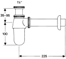 Med et justeringsområde fra 35 til 95 mm og en avstand til vegg på 225 mm tilpasses denne vannlåsen ulike installasjoner. Tilkoblingsdimensjonene G 1¼ på inngangen og DN32 på utløpet gjør den egnet for rør med diameter 32 mm.