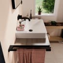 Servanten fra Xanuia Q-serien har en slipt underkant og pusset underside, noe som gir et presist resultat ved bordmontering. Overløpet i klasse CL25 sørger for trygg bruk, og det stilrene uttrykket forsterkes av at modellen leveres uten kranhull.