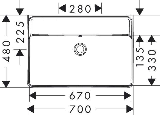 - 700 x 480 x 105 mm – rektangulær porselensservant med blank finish