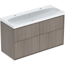 Her får du et komplett underskap med fire romslige skuffer, alle utstyrt med soft close og sklisikre matter. Dobbel servant med to blandebatterihull gjør morgenrutinene smidigere – perfekt for familier eller par som vil ha litt ekstra komfort. Møbelet leveres ferdig montert fra fabrikk, slik at du raskt kan nyte et nytt bad uten unødvendig monteringstid.
