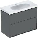 Stilrent baderomsmøbel i grå med to skuffer og praktisk håndvask