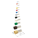 Isolert terminalrør A6-12ET Materiale: Cu 99,95 %, fortinnet Isolasjonsfarge: Sort For 6 mm² Cu-leder i henhold til DIN46228 Lengde 12 mm Verktøy for firkantkrymping: PEB0116S, PZD3 Verktøy for sekskantkrymping: PEB0116H Verktøy for trapesformet krymping: PEB0110T, PEB0110T18, GEB4010C, MOBIL (OEB0210), PVL130P/PVL130S (EB0560/EB4010)