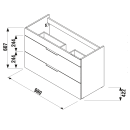 Møbelpakken inkluderer også en keramisk håndvask i størrelsen 100x43 cm, perfekt tilpasset underskapet, og som tilbyr rikelig med plass for dagligdags bruk.