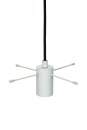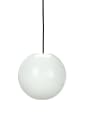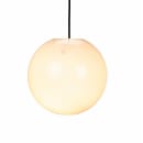 Moderne Opal Cafe-pendellampe i et nytt utseende. Opphenget er bygget rundt fire metallholdere hvor glasset hviler lett. Glasset er åpent både øverst og nederst. Den svarte stoffledningen gir et klassisk, moderne utseende