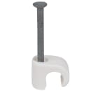 Klips for rundtråd. Slagfast elastisk polypropylen. Halogenfri og UV-stabilisert med elektrogalvaniserte herdede stålspiker.