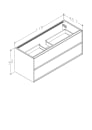 Du kan kombinere servantskapet med benkeplate og toppmontert servant, eller velge en heldekkende servant. Øverste skuff har utsparing til vannlås, og modellen på 120 cm har i tillegg utsparing for bunnventil. Det finnes også varianter med utsparing for dobbel servant og underskap uten utsparing, til bruk sammen med benkeplate. Denne modellen har utsparing for servant plassert på midten.