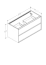 Du kan kombinere servantskapet med benkeplate og toppmontert servant, eller velge en heldekkende servant. Skapet har utsparing til vannlås i den øverste skuffen. Det er også mulig å plassere to underskap ved siden av hverandre og bruke en heldekkende servant eller benkeplate for bredder fra 120 cm til 200 cm. For et enhetlig fargeuttrykk anbefales det å bestille flere skap samlet fra fabrikk, da trefiner kan gi variasjoner i farge.