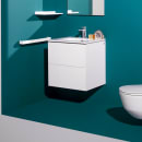 Laufens sanitærporselen er laget av 100 % resirkulert materiale, kjent for sin støt- og slagbestandighet. I tillegg er materialet: