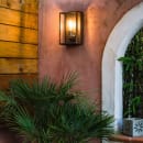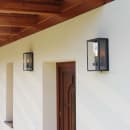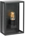 Lampen har et stilrent uttrykk med rette linjer og en svart overflate. Den er laget av stål med klart, gjennomsiktig glass som gir symmetrisk og direkte lys. Med en høyde på 300 mm, bredde på 190 mm og dybde på 110 mm, passer den godt på ulike typer yttervegger.